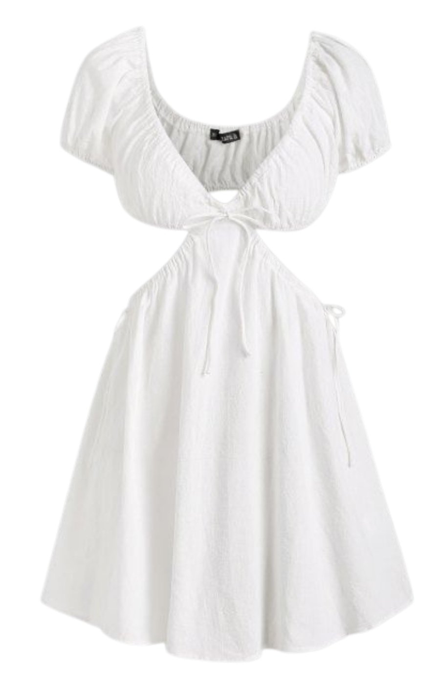 A stylish short dress with a chic, above-the-knee length, offering a modern and comfortable look for casual or party wear.