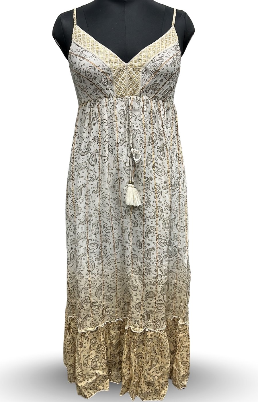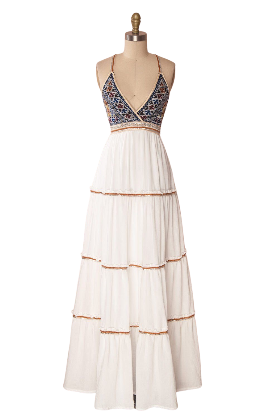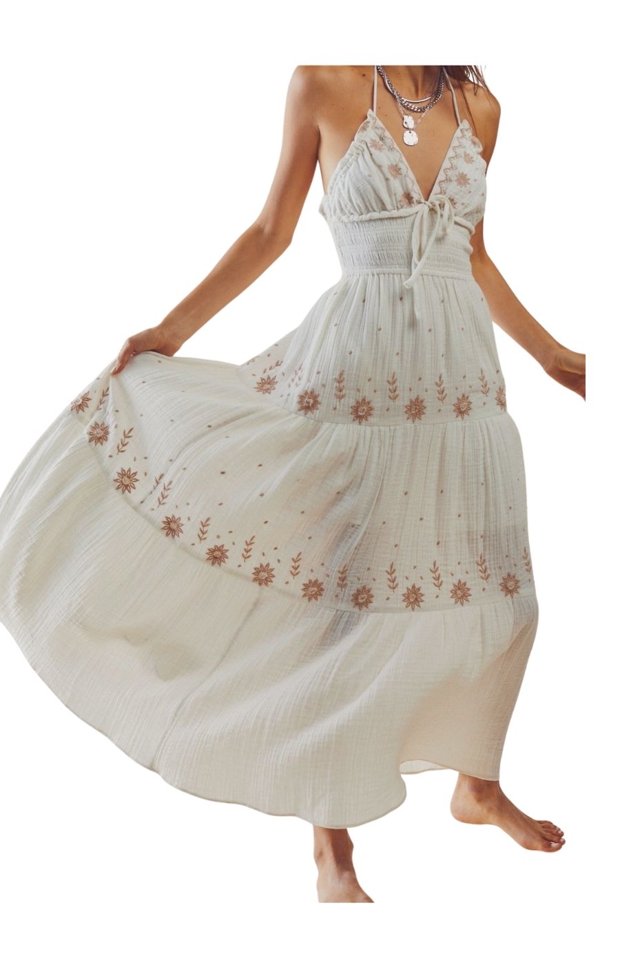 A long, flowing dress that extends to the ankles, offering an elegant and graceful silhouette suitable for casual outings or formal events.