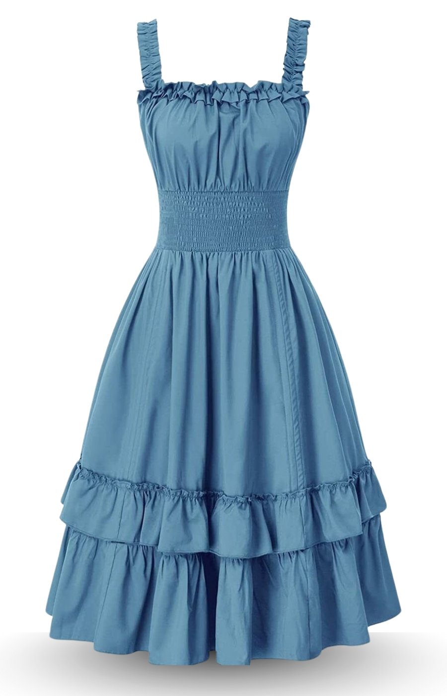 A dress made from lightweight camric (cambric) cotton fabric which is finely woven resulting in a soft feeling, breathable comfort, and a polished casual or semi-formal look.