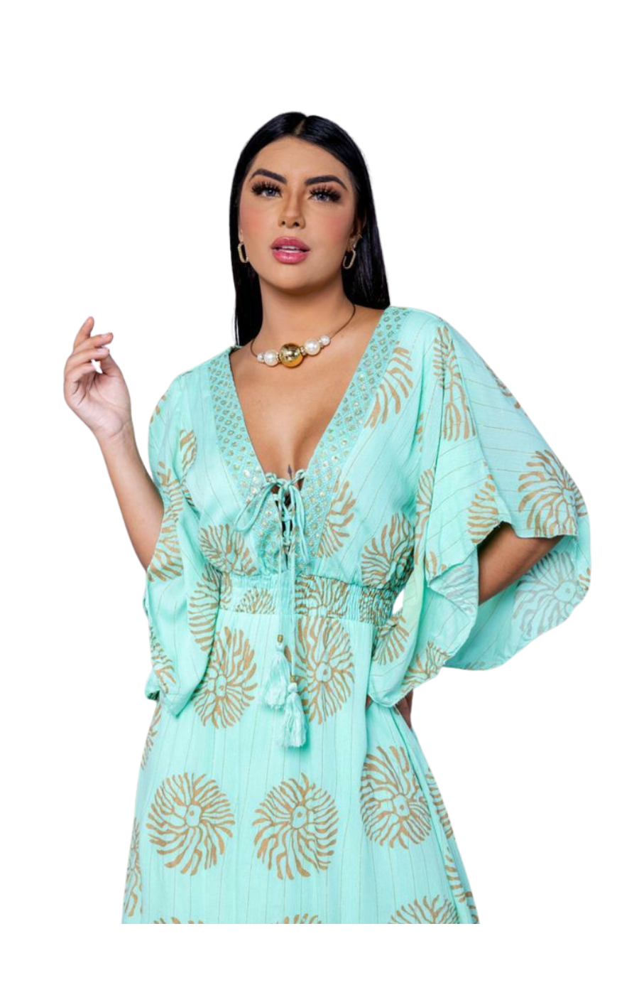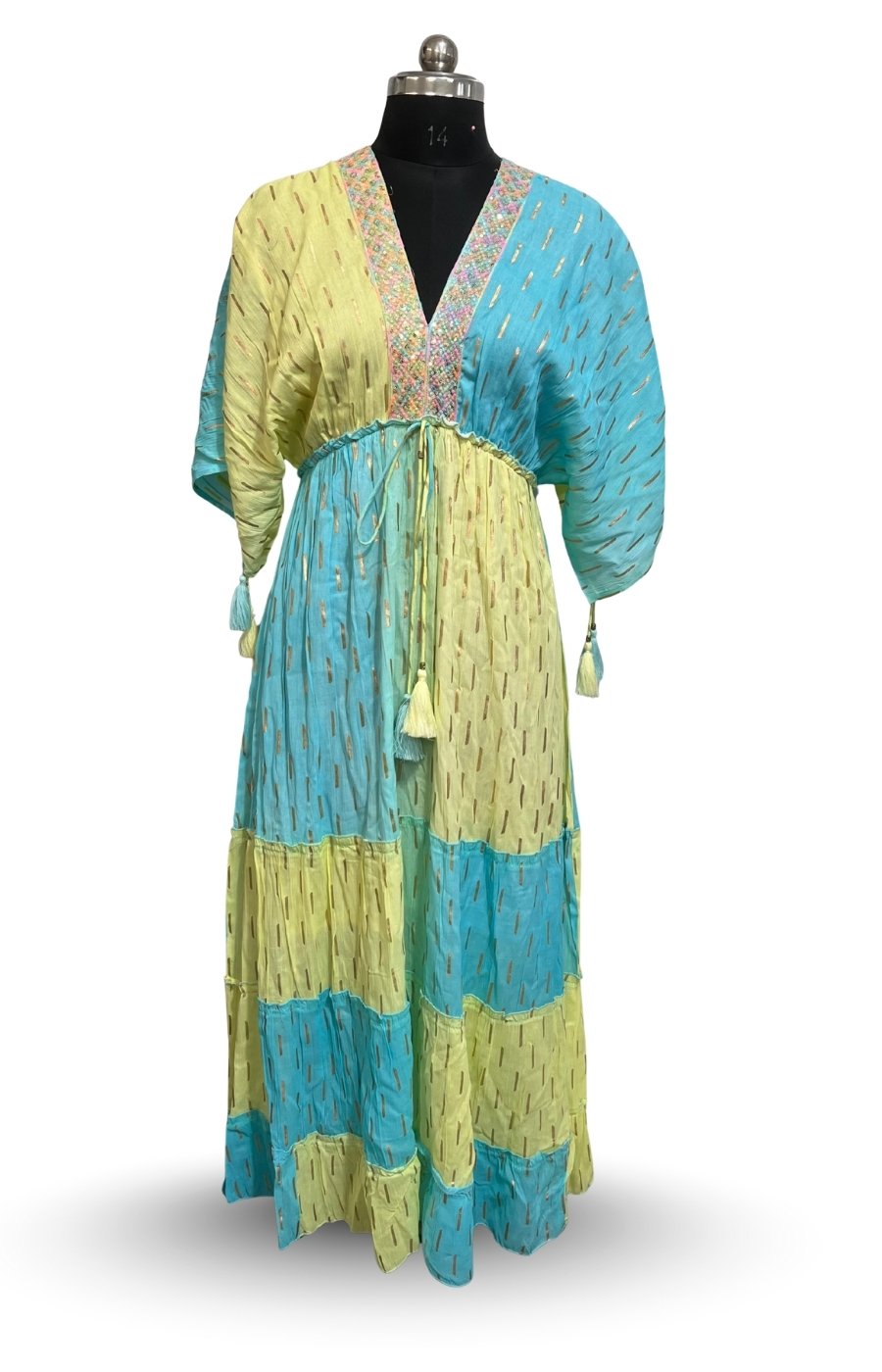 A flowy and elegant kaftan dress designed for comfort and effortless style. Its loose silhouette, soft fabric, and airy fit make it perfect for casual outings, beach days, or relaxed festive wear.