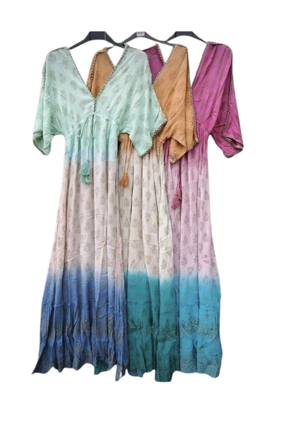 An Ombre Dress features a beautiful color-fade effect that blends shades from light to dark, creating a soft, stylish gradient look. Its smooth transitions and elegant flow make it perfect for parties, outings, and everyday fashion with a modern touch.
