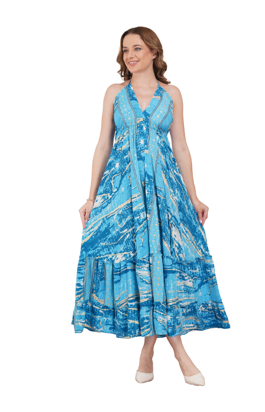 A graceful long dress designed with a flowy silhouette and elegant finish. Perfect for parties, festive events, or casual outings, offering comfort, style, and timeless charm in every step.