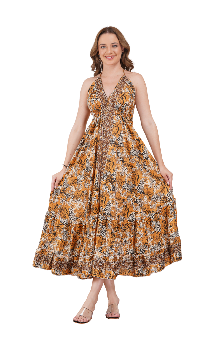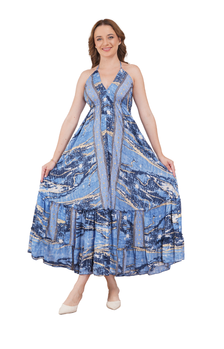 A stylish polyester long dress crafted with a smooth finish and comfortable fit. Its flowy silhouette, lightweight fabric, and elegant design make it perfect for parties, casual wear, and everyday elegance.