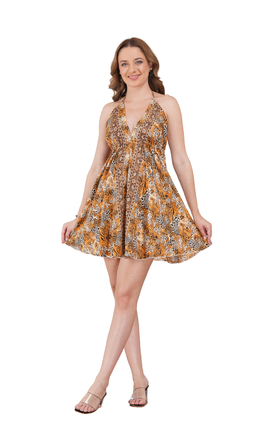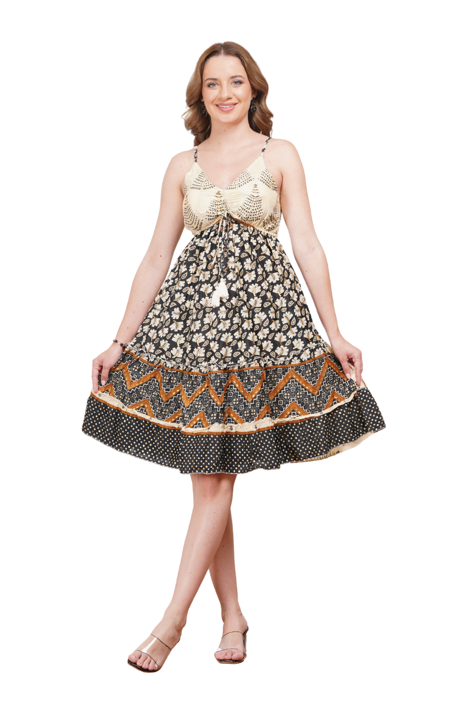 A trendy polyester short dress crafted with soft, lightweight fabric for all-day comfort. Its stylish silhouette and smooth finish make it perfect for casual outings, parties, and everyday chic fashion.