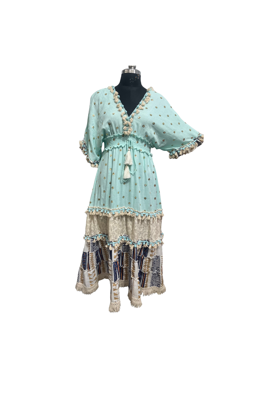A beautifully crafted lace frill dress featuring delicate detailing and a soft, feminine silhouette. Perfect for parties, celebrations, and special occasions, offering elegance with effortless charm.
